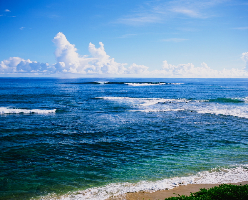 A pristine beach surrounded by pristine ocean.
