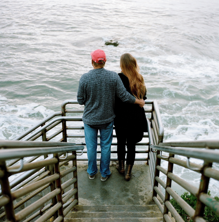 Daily life. Downtown. Sister and dad. Fuji GF670. Kodak Portra 400 film.