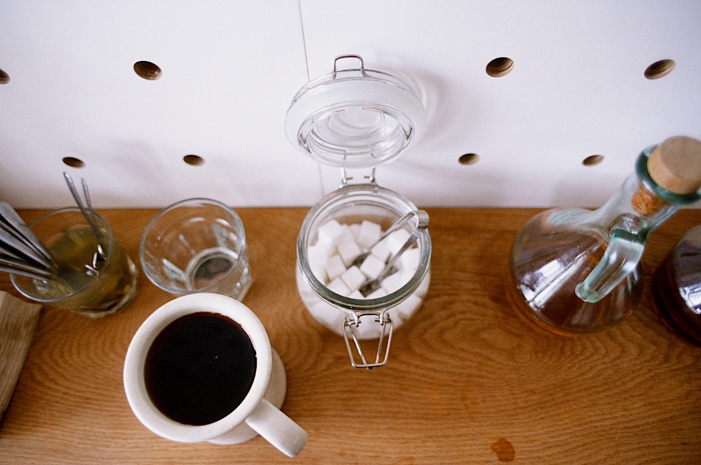 Rubbish. Beauty. Good coffee. Scrambles. Nikon FM2n. Fujichrome Provia 400x film.